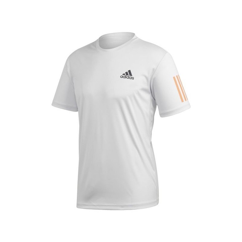 The men's Adidas club 3 Stripes Tee, providing excellent sweat and comfort. With active cooling, Aeroready technology flushes heat and moisture out of the body, thus enabling superior achievements even in hot conditions.