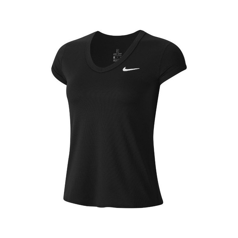 Quality women's tennis top Nike with short sleeves in black.