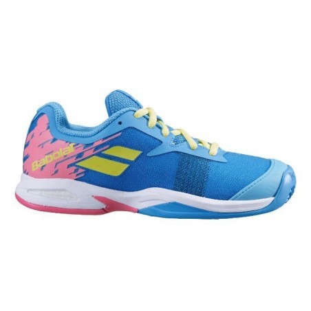 A children's version Babolat jet clay. Ultralight and very stable with MatrYX® technology of upper slipper with khuvlar and polyamide. The S-type outer sole, which was developed by Michelin, provides durability. Compression system and Ortholite® Memory cartridge provides superior comfort and upholstery.