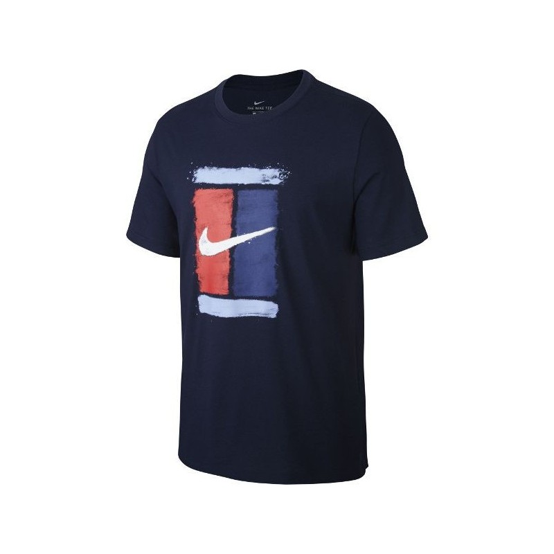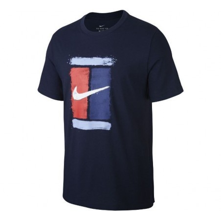 Moška teniška majica s kratkimi rokavi Nike in narisanim teniškim igriščem na sprednji strani.