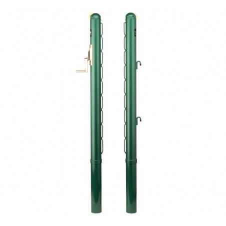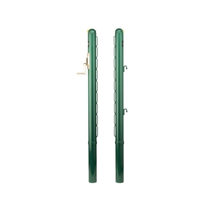 Okrogli teniški stebri iz pocinkanega jekla široki 76mm. V kompletu sta dva stebra ter elementi za pritrjevanje mreže. Brez talnih puš.